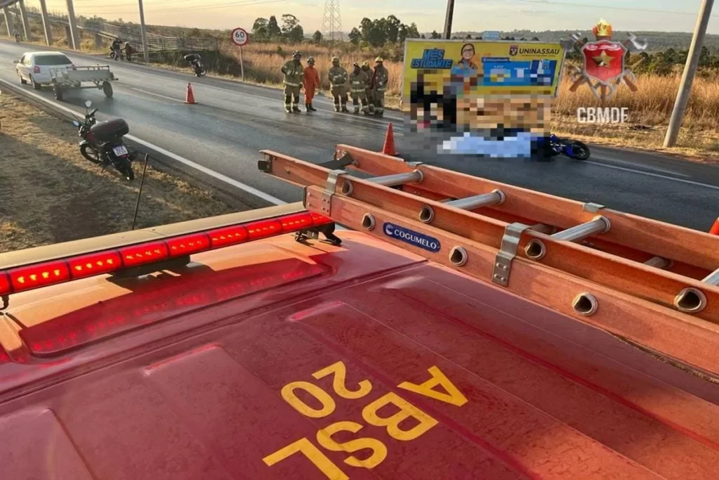 O Corpo de Bombeiros Militar do Distrito Federal (CBMDF) atendeu a ocorrência por volta das 17h. Ao chegaram no local, os socorristas encontraram as motos ao solo e, segundo relatos dos envolvidos, o carro envolvido fugiu da cena do acidente.