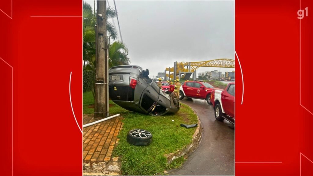 o motorista do carro que capotou foi atendido com ferimentos leves e levado para uma unidade de saúde;