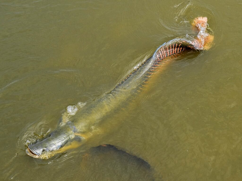 O pirarucu é um dos maiores peixes de água doce do mundo e pode chegar a 200 kg.