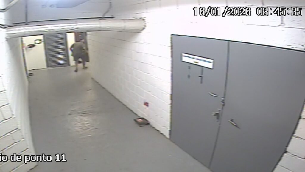 Imagens de câmeras de segurança mostram os suspeitos entrando no banheiro com mochilas, por volta das 20h30 do último dia 15 (veja vídeo acima). Eles saíram correndo do shopping às 3h45.