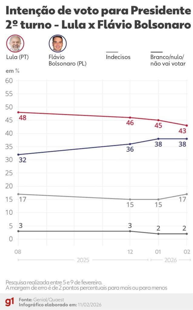Quaest, 2º turno: Lula lidera; menor vantagem é contra Flávio Bolsonaro