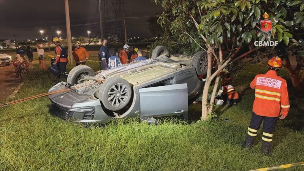 Mulher morre após ser arremessada para fora de carro durante capotamento em Samambaia, no DF