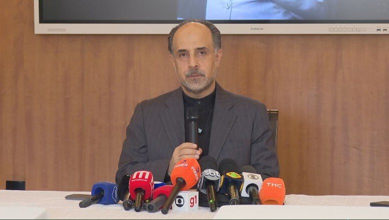 Embaixador do Irã recebe jornalistas para coletiva de imprensa.