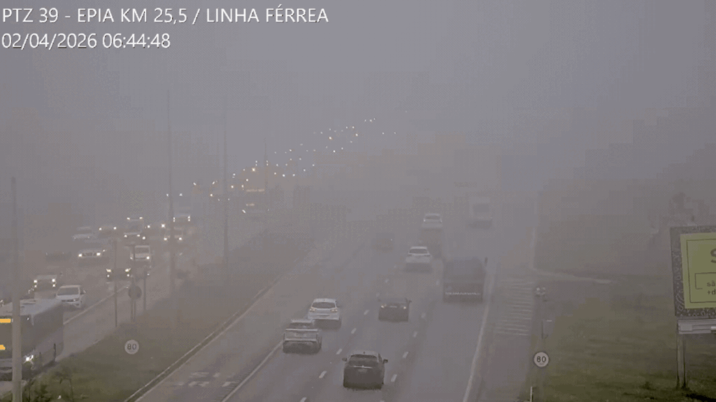 Imagens de câmeras de trânsito registram a neblina nas principais vias do DF, por volta das 6h (veja vídeo acima).