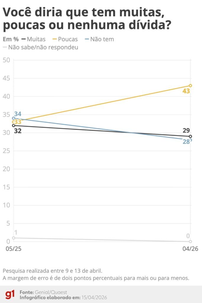 Não tem dívidas: 28% (eram 34%);