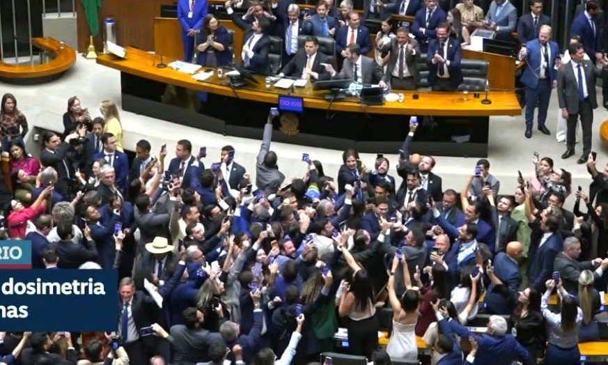 Câmara derruba veto de Lula e abre caminho para reduzir pena de Bolsonaro; Senado vota daqui a pouco. ASSISTA Congresso analisa veto de Lula ao PL da Dosimetria. Ontem, Senado rejeitou indicação de Jorge Messias ao STF. O Congresso vai analisar, nesta quinta-feira (30), o veto do presidente Lula ao projeto que reduz a pena de condenados por atos golpistas, inclusive Jair Bolsonaro. . Para derrubada do veto, serão necessários 257 votos de deputados e mais 41 votos de senadores. . A tendência é que a oposição ao governo Lula atinja o número suficiente para tornar lei a redução das penas.. No início da sessão, o presidente do Congresso, Davi Alcolumbre, fez uma manobra atípica para reduzir a pena de Bolsonaro sem alterar condenação de acusados de crimes hediondos.. Esta pode ser a 2ª derrota da semana para o governo Lula. Ontem, em resultado histórico, o Senado rejeitou a indicação de Jorge Messias ao STF.