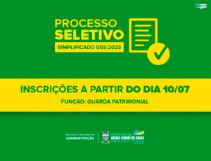 O MUNICÍPIO DE ÁGUAS LINDAS DE GOIÁS, pessoa jurídica de direito público interno, com sede nesta municipalidade, através da SECRETARIA MUNICIPAL